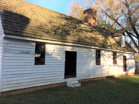 a mid-18th-century dwelling that was Patrick Henry's home for a time in the 1750s. The oldest section of the 1½-story building is the only example of colonial vertical plank construction that has been identified in Virginia. In fact, very few examples of this type of construction have been found in the entire southeastern United States.1 The building's importance as an artifact and as a primary document in the history of Virginia construction technology is immense.2