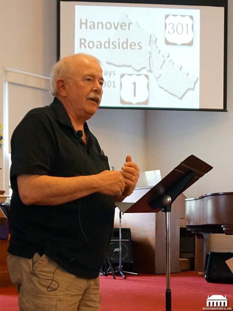The Hanover County Historical Society's quarterly meeting took place on Sunday, March 26, at historic Slash Church in Ashland. The speaker was Tim O'Gorman, the former director of the US Army Quartermaster Museum at Fort Lee, and author of three fascinating books that detail the many roadside attractions that dotted Routes 1 and 301 in Virginia from the 1920's to the 1960's, many of which no longer exist. Mr. O'Gorman presented Hanover County: Routes 1 and 301 Roadsides, concentrating on those commercial venues in Hanover County. |