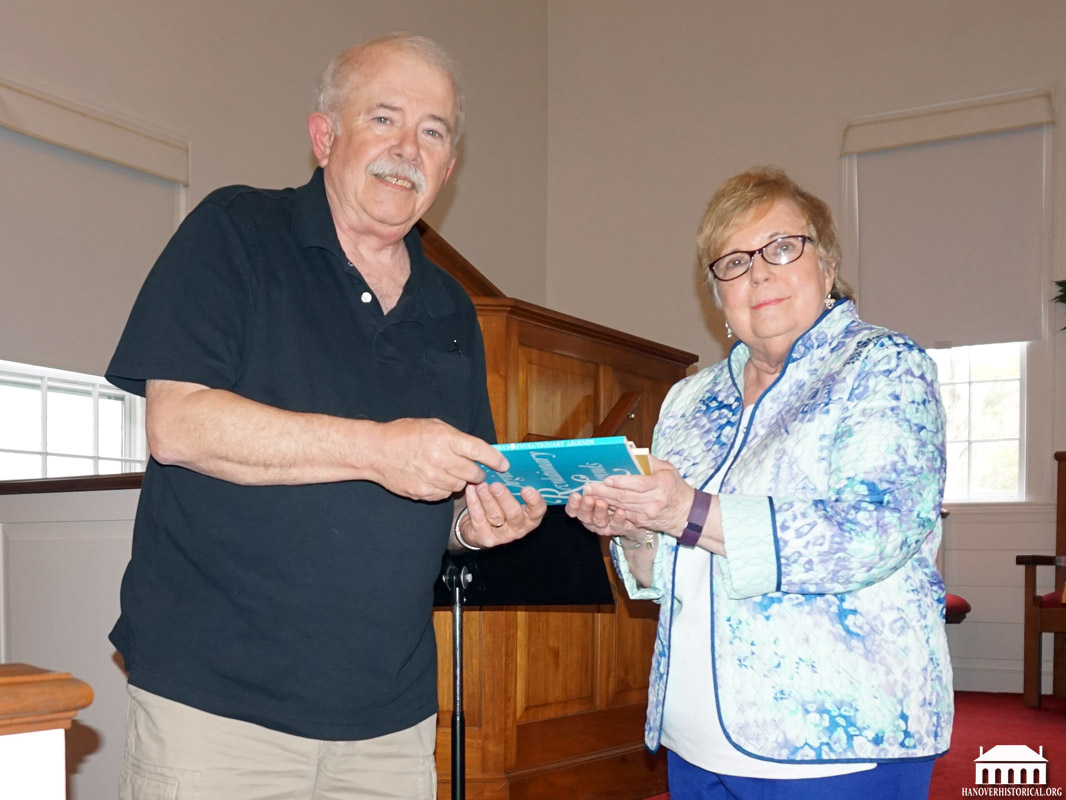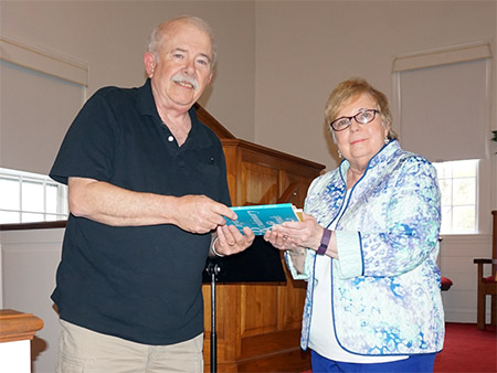 Mr. O'Gorman is presented with two Historical Society books by HCHS president Faye Wade. |