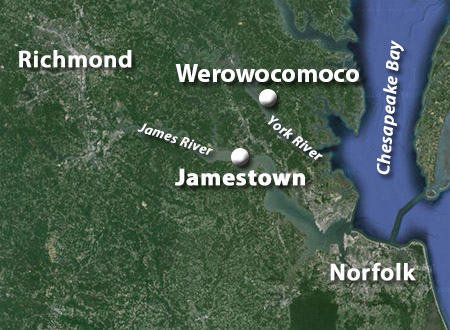 Werowocomoco's location on the York River |
