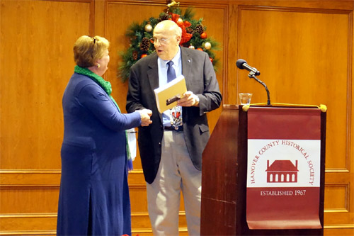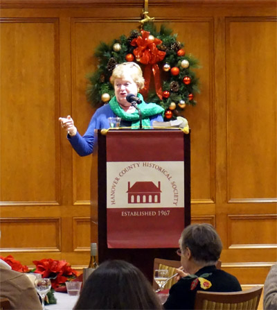 The evening's presentation was made by past Society President Anne Geddy Cross, who spoke about Hanover County at the time of its founding in November of 1720, and what came before. Hanover County celebrates its 300th birthday in 2020, and this was the first presentation in HCHS' celebration of the anniversary of the county's formation.